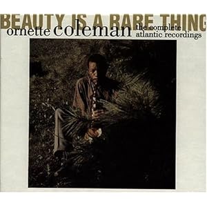More jazz. When my jazz-fan friend learned that I was listening to this he suggested that I stop at The Shape Of Jazz To Come. I am not so faint-hearted, I responded. A little avant garde never scared me. and it’s true. It doesn’t scare. That doesn’t mean that I can make head or tail of it.The collection is called Beauty Is A Rare Thing, and it is the complete recording history of Ornette Coleman on Atlantic. I made an anthology out of it, with no concept of how to do that. A bit of this album, a bit of that, except for Free Jazz, which consisted of one.. mmm. Not track, because an LP can’t have fewer than 2 tracks, not “song” exactly, well you know.